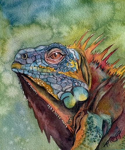 “Colorful Iguana” watercolor 9 1/2”x11” $400 |