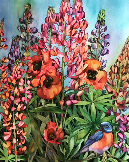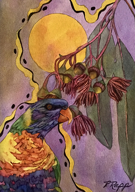 Rainbow Lorikeet, watercolor 16”x 20” |